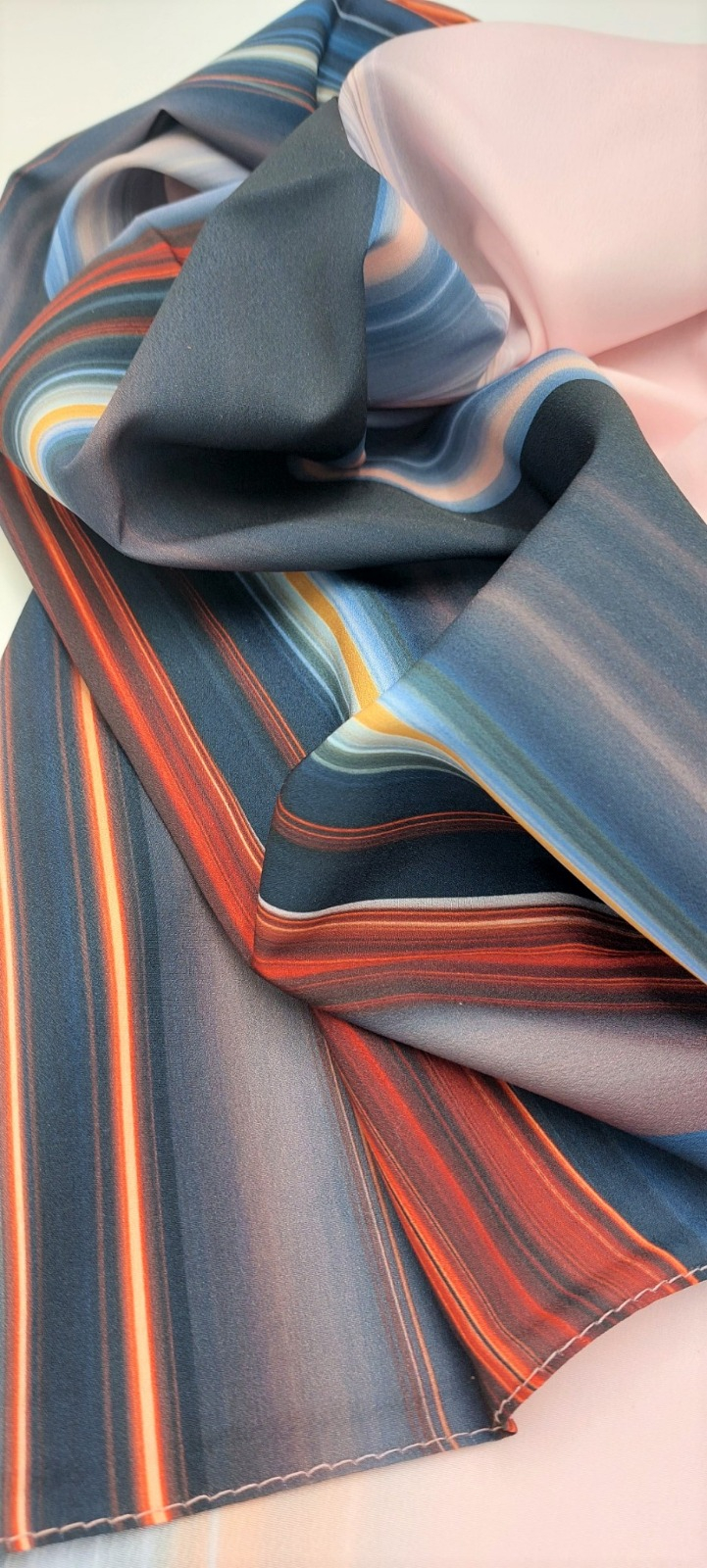 Esarfa rafinată realizată dintr-un mix delicat de vâscoză și mătase, ce îmbină perfect confortul cu eleganța. Textura este fină și ușor lucioasă, oferind o senzație plăcută la purtare și un aspect sofisticat. Materialul ușor și fluid cade frumos, evidențiind orice ținută, de la cele casual până la cele elegante. Dimensiunea generoasă de 70 x 180 cm permite stilizări variate, fiind ideală atât pentru a fi purtată pe umeri, cât și în jurul gâtului. Este accesoriul perfect pentru un plus de stil și feminitate în orice sezon.